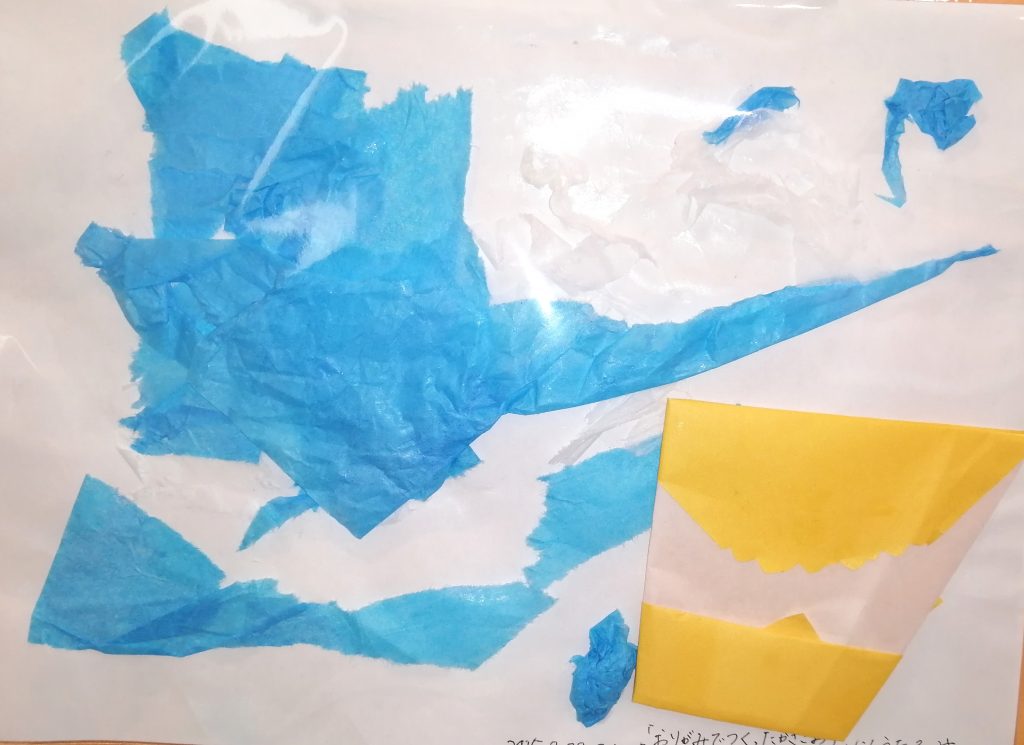 保育園でつくりました。先月ママと2人で食べたブルーハワイかきごおり