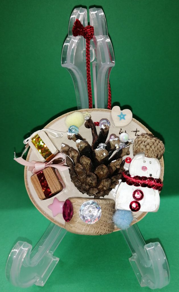 まつぼっくりやビーズをつかって、たのしいふゆかざりをつくりました。