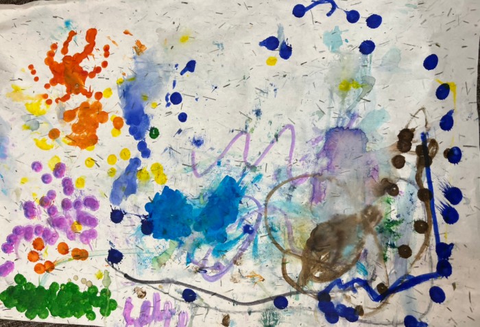 絵の具を使ってにじみ絵を描きました。お花畑をイメージしたそうです。
