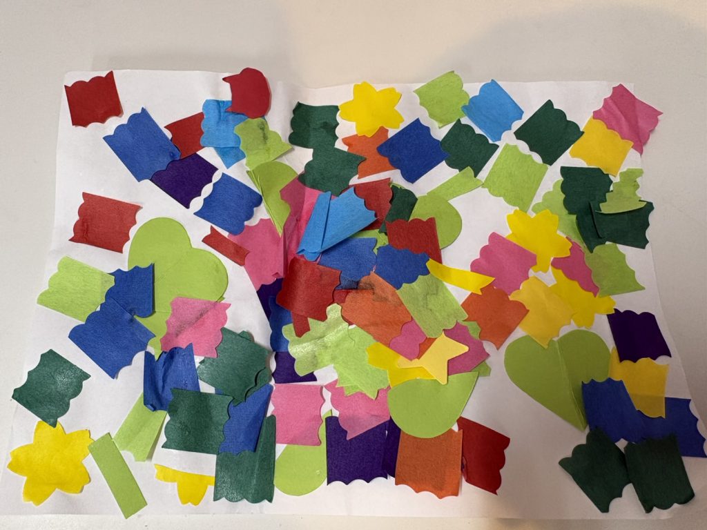 カラフルな色合いで自由にペタペタ貼り付けました。旅行によく行くので、ホテルに楽しい思い出があることを表現したように感じました