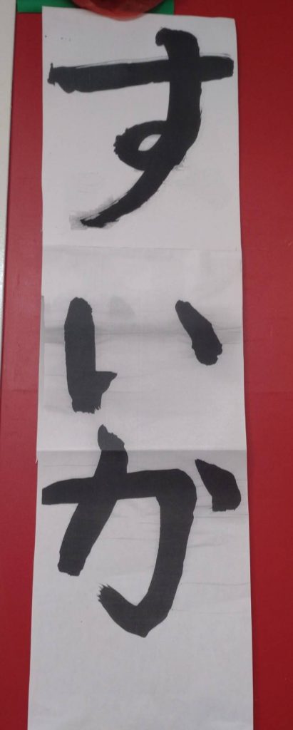 8号の太いだるま筆で、書き初め練習繰り返し、丁寧にかけました!