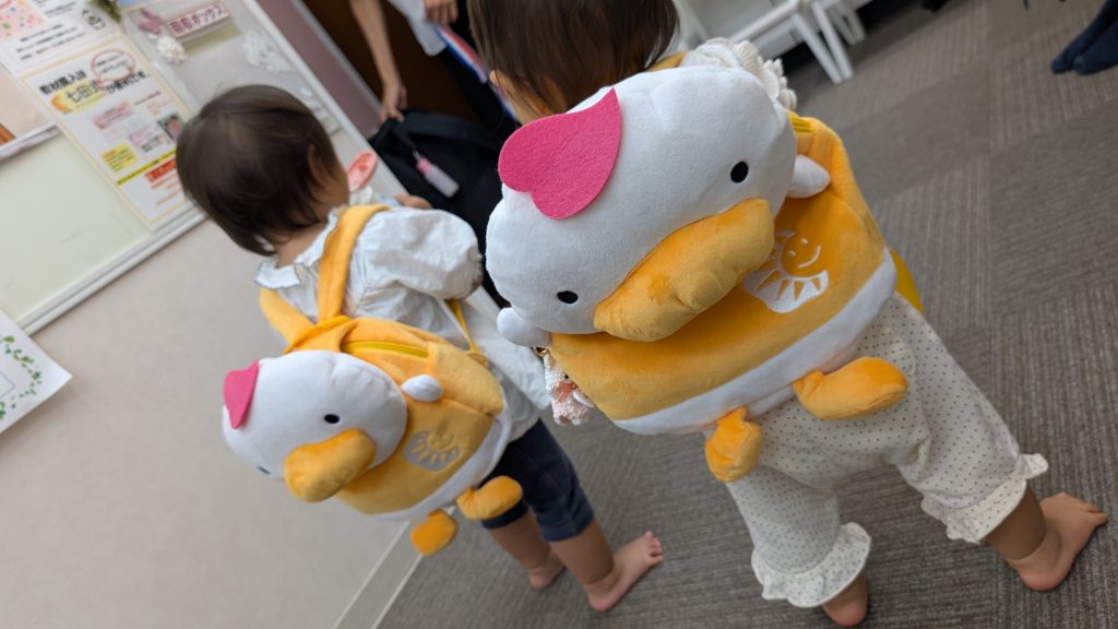 ダックちゃんリュック届いた時はハイハイだったのが、今は背負って立って歩けるようになりました😄