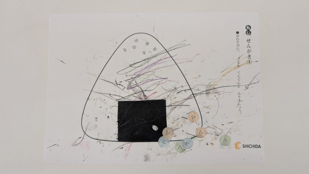 おにぎりに美味しそうなふりかけイメージ。てんてん書きをして持ってきてくれました。